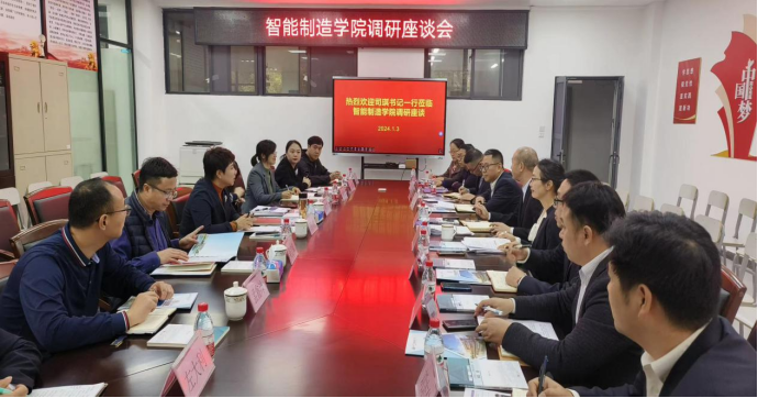 2024年1月3日上午,学校党委书记司琪到智能制造学院开展调研,党政办公室主任郭高萍、人事处处长吴显嵘和教务处副处长孟鑫沛随行。智能制造学院党总支书记刘佩云、院长李龙根、副院长范四立和唐方红、专职副书记熊长炜、党组织支委及教研室主任等参加了调研活动。