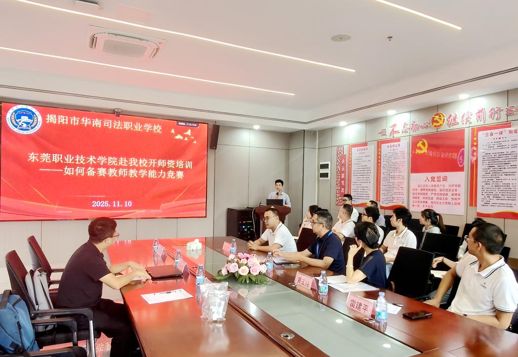 11月10日,东莞职业技术学院交流团队抵达揭阳市华南司法职业学校。东职院数字化设计与制造技术专业骨干教师、“东莞市技术能手”李笑勉,系统分享了指导学生参加职业技能竞赛的心得,内容覆盖教师成长、参赛学生选拔、梯队建设及赛场实战技巧。随后,汽车制造与试验技术专业负责人陈先亮老师,则聚焦教师教学能力比赛,深入剖析了团队组建、内容选题、思政融合及教学视频制作等备赛核心环节。