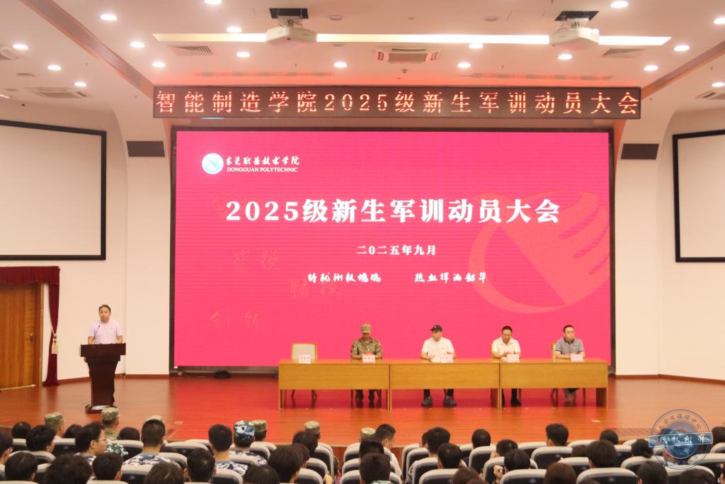 2025年9月14日下午,东莞职业技术学院智能制造学院2025级新生军训动员大会在培训楼报告厅隆重举行。智能制造学院党总支书记李龙根、院长范四立、副院长唐方红、熊长炜,全体承训教官,以及学院辅导员、班主任和2025级全体新生共同参会,大会由副院长熊长炜主持。
