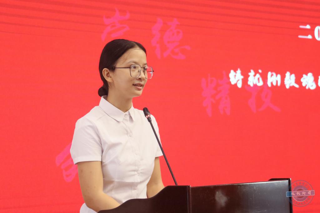 大会在庄严的国歌声中拉开帷幕,奏唱国歌后,新生代表25级机械协同1班周妍婷上台发言,她代表全体新生表达了对军训生活的期待与决心,对学校“崇德、笃行、精技、创新” 育人理念的认同,以及对学院 “双高计划” 专业群建设成果的自豪。她表示,作为 “中国智造” 未来的建设者,将以饱满热情投入军训,在烈日与汗水中锤炼意志、学会协作,以严谨态度遵守纪律,以坚韧品格迎接挑战,用实际行动展现东职院智能制造学子的青春风采,为未来深耕专业、服务产业打下坚实基础。