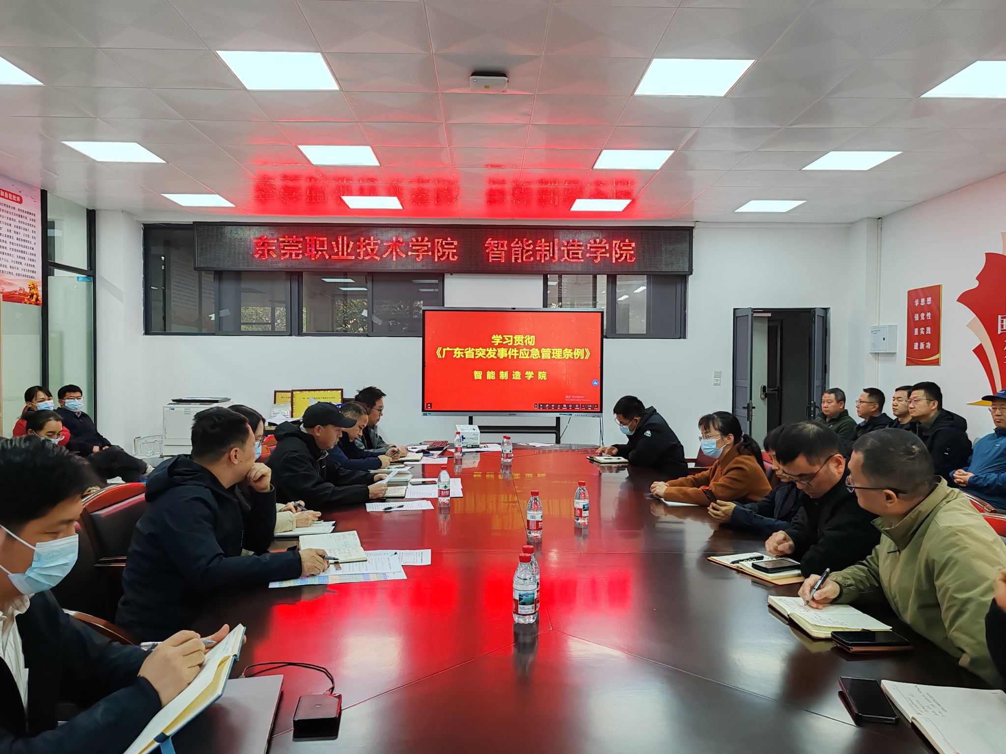 《广东省突发事件应对条例》(以下简称《条例》)自2026年1月1日起施行。为深入学习贯彻《条例》内容,提升学院依法应对突发事件的能力,2026年1月7日,智能制造学院召开专题学习会,组织全体教职工集中学习《条例》精神,智能制造学院党总支书记李龙根主持会议。